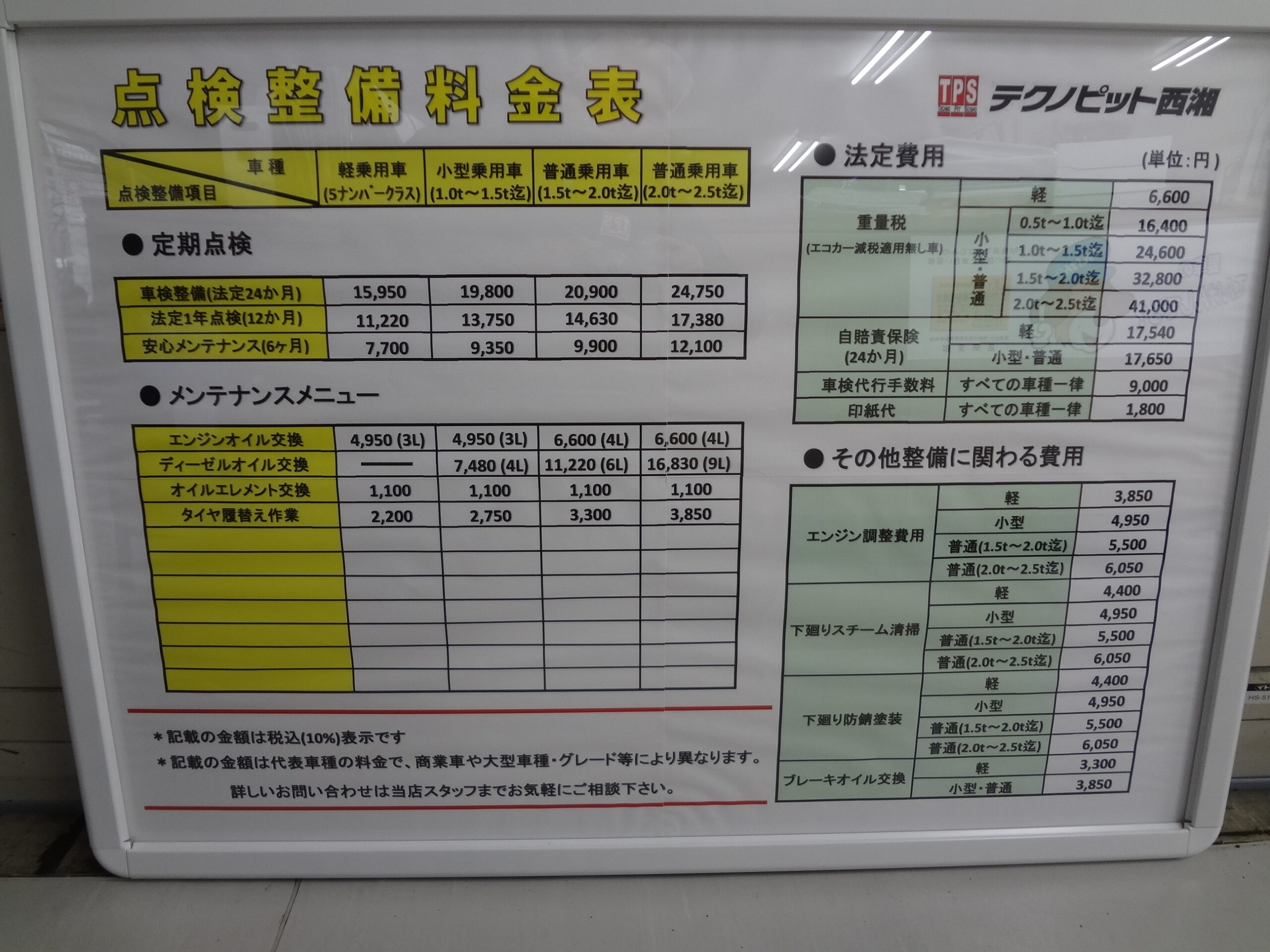 - 自動車の点検・整備を行う際の料金を教えてください。